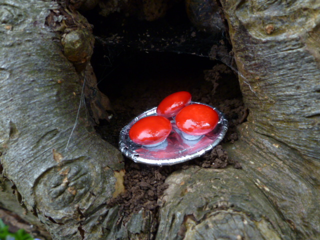 three red On Wednesday she was surprised to find three, shiny red toadstools, in a hole in the tree. They were on a plate! Who could have put them there? Share this: Share on X (Opens in new window) X Share on Facebook (Opens in new window) Facebook Email a link to a friend (Opens in new window) Email Like Loading... Related