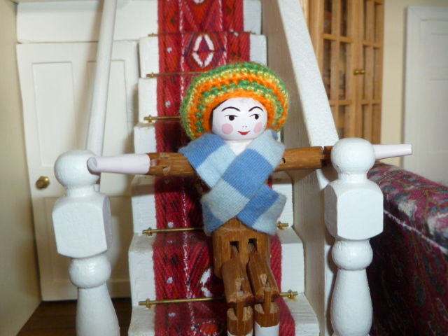It belonged to someone in the house but it was too hot for the summer. Perhaps the owner was out and about, jauntily sporting a lovely straw hat or a cotton cap . They probably weren’t shopping because their shopping basket was still hanging on a peg although of course you can carry things in pockets, especially pens and pencils and lists. Doll Splinter loves lists!