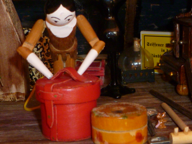 So in went Doll Splinter, and in went those wooden arms, into a big,red hat box.