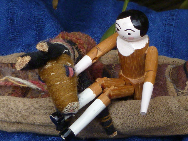 Once , long ago, she sat in a canoe in Peru with a sad brown donkey and it’s silent staring owners. The canoe slipped quietly down the river in the moonlight, keeping close to the bank, while Doll Splinter stroked the donkey’s neck as it peered mournfully over the side.